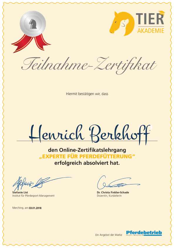 Um unsere Pferde optimal zu versorgen haben wir uns speziell im Bereich Fütterung weitergebildet.