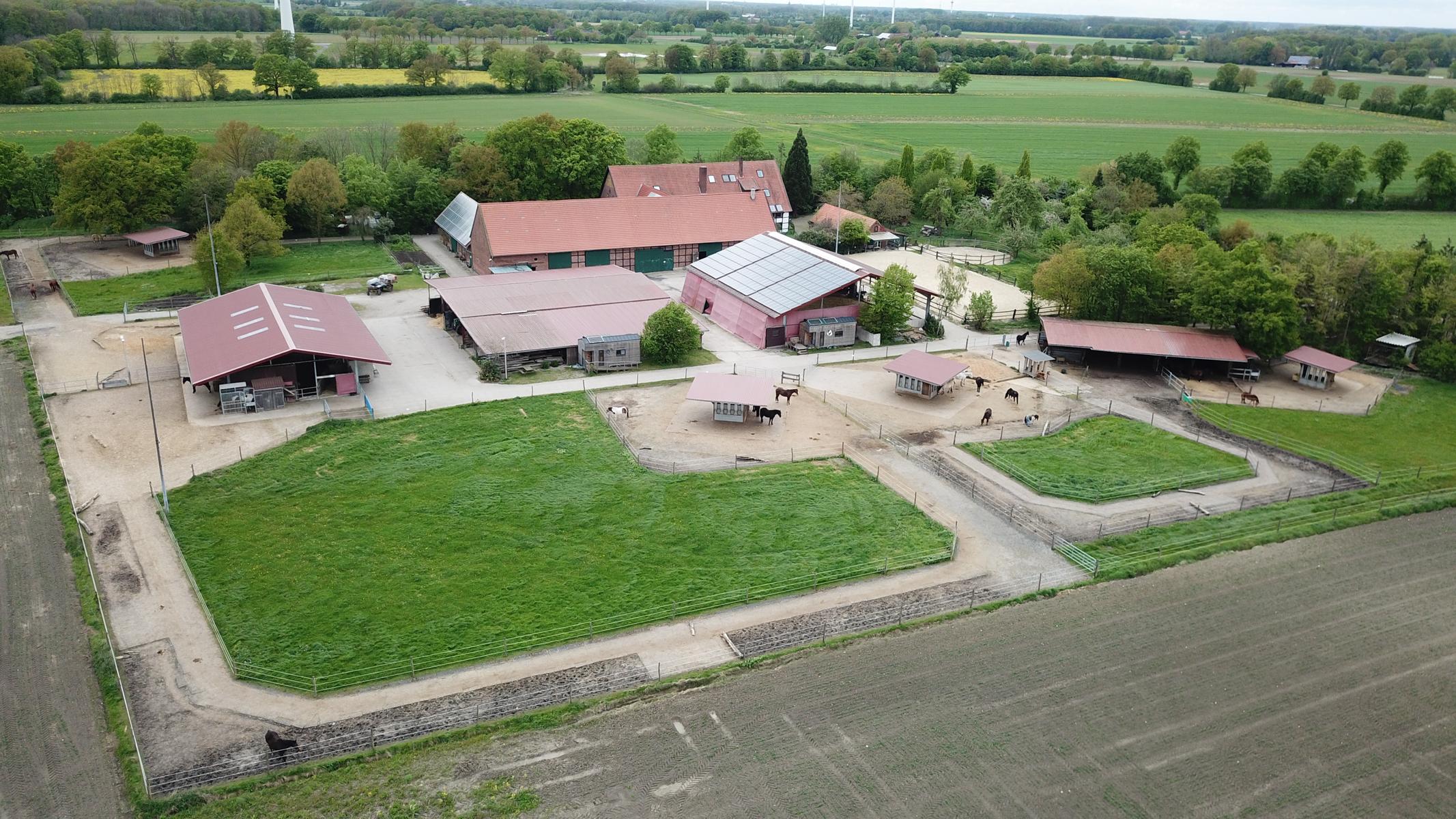 Mit unserer nagelneuen Pensionsanlage zur artgerechten Haltung von Pferden versuchen wir den natürlichen Bedürfnissen der Pferde so weit wie möglich umzusetzen. Die Haltung an frischer Luft in Gruppen und auf einem großen Gelände sind dabei die wichtigsten Dinge und diese werden ergänzt durch eine qualitative hochwertige Futterversorgung und gekrönt durch das Herdenmanagement, das gute Auge für Pferde von dem Betreuungsteam.
